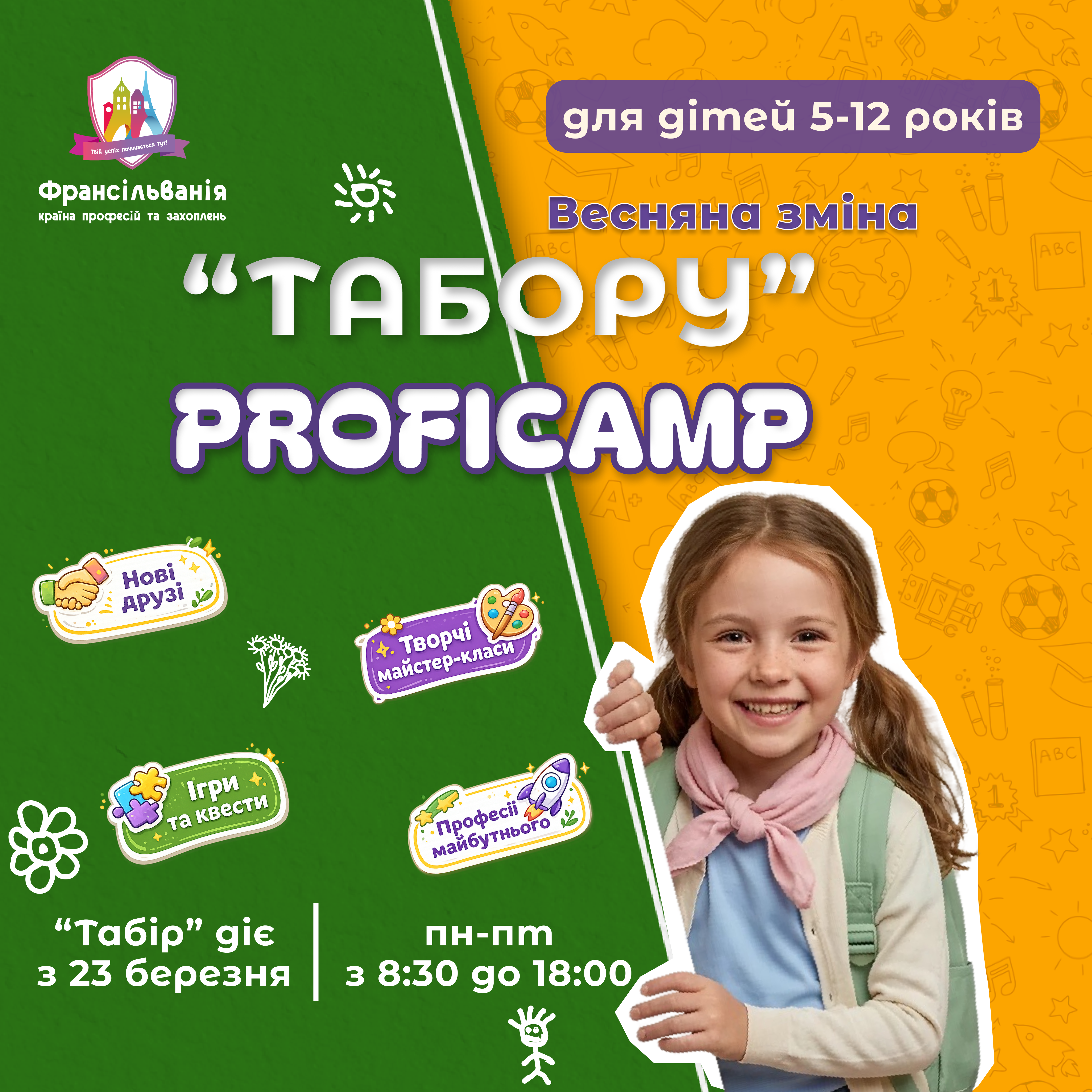 PROFICAMP — це “табір” у Франсільванії, де діти проводять канікули цікаво, активно та з користю, поки ви спокійно займаєтесь своїми справами. Тут вони відкривають нові навички, знаходять захоплення та заводять нових друзів.