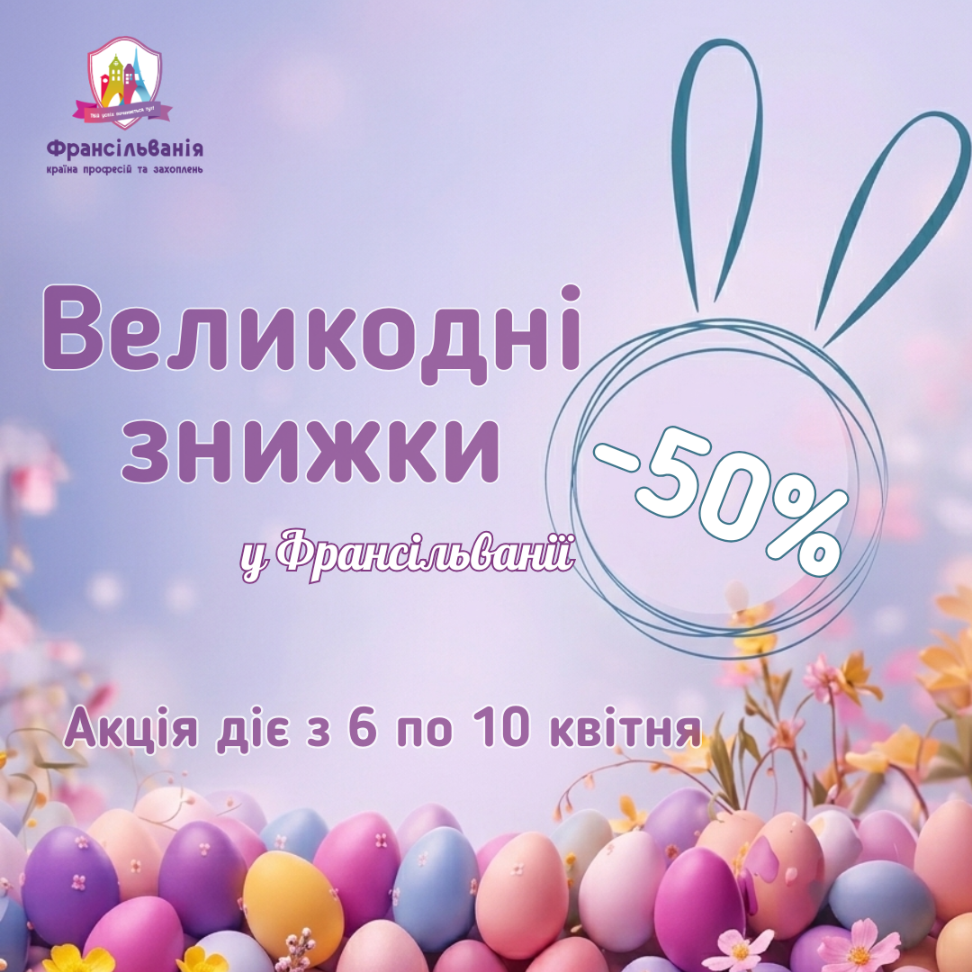 З 6 по 10 квітня до Великодніх свят отримуйте -50% на дитячий квиток для індивідуального відвідування. ⠀